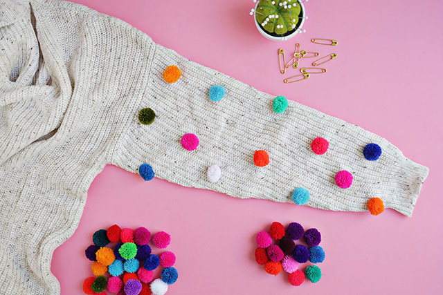 Öncelikle elinizdeki karışık renk ponponları iki gruba ayırmalısınız. Bu sayede kazağınızın iki kolunda da aynı oranda olmasını sağlayabilirsiniz. İkiye ayırdığınız ponponları çengelli iğneler yardımı ile kazağınızın kolları üzerinde koyacağınız yerleri ayarlayın. Bunu yaparken ponponların eşit uzaklıkta olduğundan emin olun. Çengelli iğneler ile yerlerini belirlediğiniz ponponların her birini yerlerine dikin ve işte kazağınız hazır! Rengarenk ponponlarla hazırladığınız kazağınız hem çok trend hem de eski kazakları değerlendirmek için birebir.